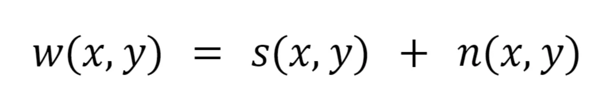 The noise might be added or multiplied to the image. Here is the formula for the Additive Noise Model, where: