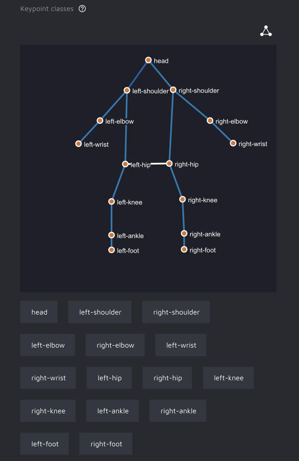 Keypoint classes - a form for creating the classes themselves and drawing a schema skeleton.