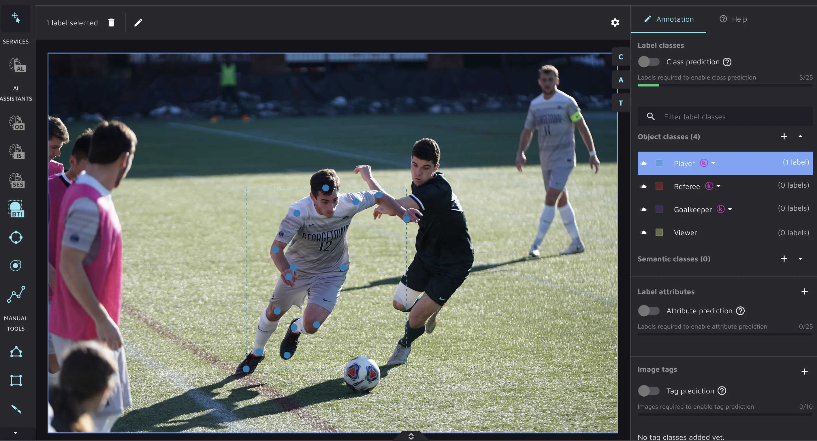 To activate the Keypoints feature, please navigate to the Annotation Environment and click on the Keypoints icon in the left tab.