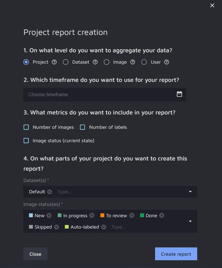 Dataset level – get details on each dataset (suits if you have larger projects with several datasets);